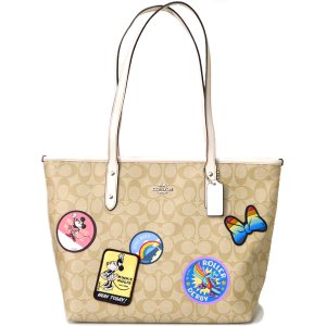 【COACH】コーチ ディズニー ミニーマウス コラボ シグネチャー パッチワーク トート ショルダーバッグ ライトカーキ×チャーク(日本未発売)