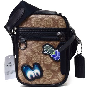 【COACH】コーチ メンズ ディズニー コラボ コーティングキャンバス カーフレザー シグネチャー スノーホワイト アンド ザ セブン ドワーフス パッチワーク アップリケ 白雪姫 七人の小人 テレイン クロスボディー ショルダーバッグ タン〔日本未発売〕