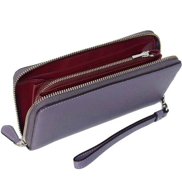 コーチのリストレット付きレザー長財布を本場アメリカで直入荷!落ち着いた新色「ヴィンテージパープル」カラーは上品な色味で大人の女性に人気の幅広い層で大人気のカラー*フロントにはメタルロゴも添えられ高級感を演出♪使い勝手も良いラウンドファスナー式開閉にスリムなフォルムながら内側はカードケースやポケットなどの収納面も豊富で、財布の中もすっきり整頓できます!リストレット付きなのでクラッチバッグのように財布単独でちょっとしたお出かけにも使えそう♪大切な方へのギフトにもおすすめです◎本日16時までの注文は即日出荷!もちろん全品送料無料!お客様の顔を思い浮かべ真心込めて梱包いたします!アメリカのコーチファクトリーより入荷の新品本物の商品ですのでどうぞご安心してお買い求めくださいませ。