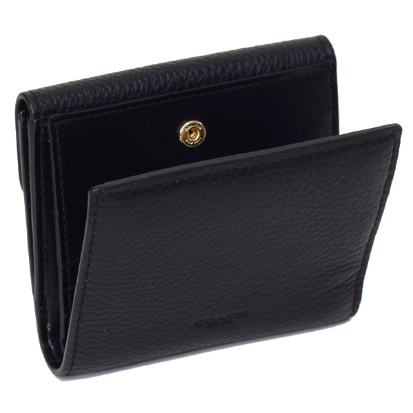本場アメリカのコーチから可愛い二つ折り財布を厳選入荷!大きなバックルが超キュート♪ゴールドの馬車ロゴでインパクト大!シンプルなブラックの本革レザーが魅力たっぷり!コンパクトなサイズながら内側はカードポケットや小銭入れ付きで使い勝手も抜群◎メインのお財布としてはもちろん、サブ用のお財布としても使えそう!プレゼントにも喜ばれそうなアイテムです♪本日16時までの注文は即日出荷!もちろん全品送料無料!お客様の顔を思い浮かべ真心込めて梱包いたします!アメリカのコーチファクトリーより入荷の新品本物の商品ですので、どうぞご安心してお買い求めくださいませ。