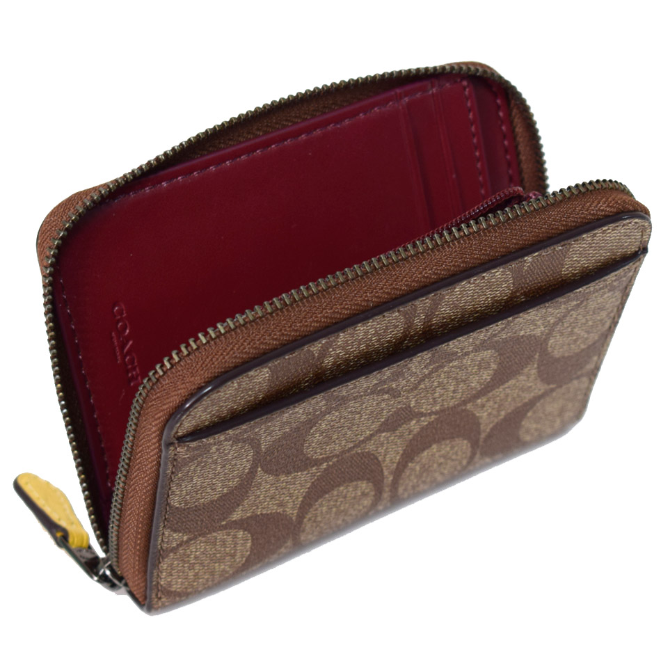 コチガルのホームコンパクト財布【COACH】コーチ コーティングキャンパス スムースレザー シグネチャー フルーツ レモン スモール ジップ アラウンド 二つ折り 財布 カーキ×サンフラワー〔日本未発売〕