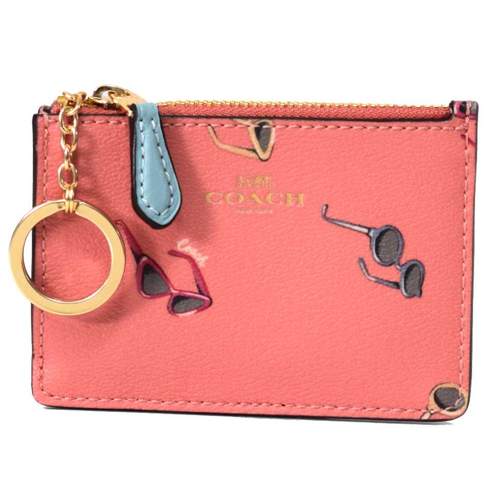 コチガルのホームコインケース【COACH】コーチ コーティングキャンバス スムースレザー サングラス プリント キーリング付 スキニー コインケース ライトコーラルマルチ(日本未発売)