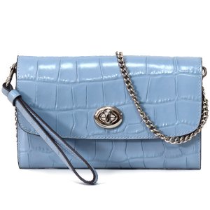 コーチからショルダーバッグにもクラッチバッグにもなる2WAY仕様の本革バッグを本場アメリカで直入荷!バッグのボディー部分がターンロックのワンポイントで超シンプル♪鮮やかなコーンフラワー色で若干光沢のあるクロコのエンボスドレザーがとっても上品で魅力的ですね♪スマホ入れやお財布としても使える機能性抜群の斬新なミニバッグです*ちょっとしたお出かけや旅行のサブバッグにもピッタリです◎また、ショルダーは取外しができるのでクラッチバッグとしても使用可能!ギフトにもおすすめ*本日16時までの注文は即日出荷!もちろん全品送料無料!お客様の顔を思い浮かべ真心込めて梱包いたします!アメリカのコーチファクトリーより入荷の新品本物の商品ですのでどうぞご安心してお買い求めくださいませ。