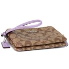 【COACH】コーチ コーティングキャンバス シグネチャー ダブル コーナー ジップ リストレット ポーチ カーキ×ライラック〔日本未発売〕[87591]