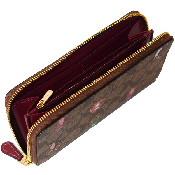 コチガルのホーム長財布【COACH】コーチ コーティングキャンバス スムースレザー シグネチャー パーティー アニマル プリント アコーディオン ジップ 長財布 カーキ×ピンクマルチ(日本未発売)