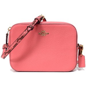 コチガルのホームショルダーバッグ【COACH】コーチ ぺブルレザー スネークエンボスドレザー パイソン ミニ カメラバッグ クロスボディー ショルダーバッグ ブライトコーラル×ワイン(日本未発売)