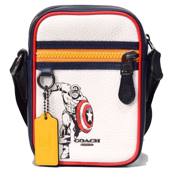 【COACH】コーチ ぺブルレザー カーフレザー マーベル コラボ テレイン キャプテンアメリカ クロスボディ 斜め掛け ショルダーバッグ チャークマルチ〔日本未発売〕[coach2430]