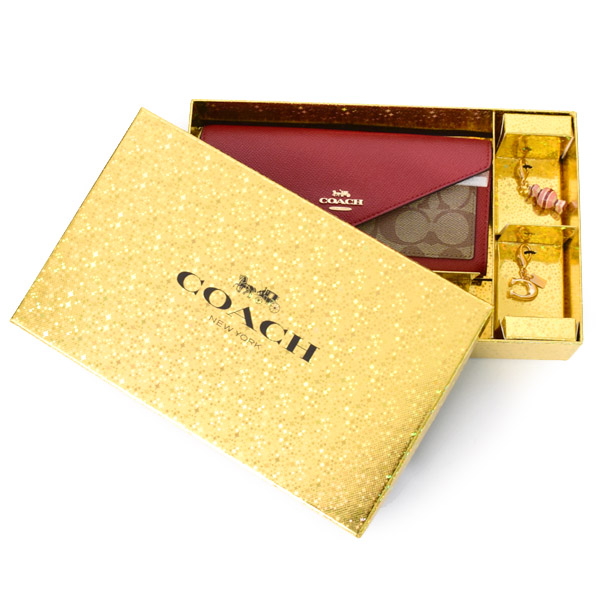 日本未発売♪2種類のチャームが付属した珍しい長財布セットを買い付けました!専用BOX付きなのでギフトにピッタリ!上品な印象で幅広い年齢層の女性に人気のレッドカラーとカーキカラーの組み合わせは入手困難*キャンディーのチャームが特にキュート♪見た目だけではなく、内側はカードケースやポケットなどの収納面も豊富で、財布の中もすっきり整頓させたい方にオススメ◎ギフトにも喜ばれそうなアイテムです♪本日16時までの注文は即日出荷!もちろん全品送料無料!お客様の顔を思い浮かべ真心込めて梱包いたします!アメリカのコーチファクトリーより入荷の新品本物の商品ですのでどうぞご安心してお買い求めくださいませ。