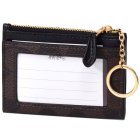 コチガルのホームコインケース【COACH】コーチ コーティングキャンバス スムースレザー シグネチャー キーリング付き ミニ スキニー IDケース コインケース ブラウン×ブラック(日本未発売)