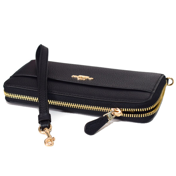 コーチのリストレット付き本革レザー長財布を本場アメリカで直入荷!中でも特に人気のブラックカラーは幅広い層で大人気の定番カラー*フロントにはメタルロゴも添えられ高級感を演出♪使い勝手も良いラウンドファスナー式開閉にスリムなフォルムながら内側はカードケースやポケットなどの収納面も豊富で、財布の中もすっきり整頓できます!リストレット付きなのでクラッチバッグのように財布単独でちょっとしたお出かけにも使えそう♪大切な方へのギフトにもおすすめです◎本日16時までの注文は即日出荷!もちろん全品送料無料!お客様の顔を思い浮かべ真心込めて梱包いたします!アメリカのコーチファクトリーより入荷の新品本物の商品ですのでどうぞご安心してお買い求めくださいませ。