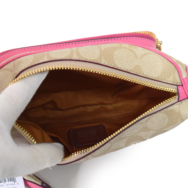 コーチの可愛いウエストバッグ♪落ち着いたカーキカラーとピンクのキュートな組み合わせが斬新!とってもシンプルに上品にデザインされた超オシャレなボディバッグです♪オシャレ女子にピッタリな希少なカラーの日本未発売バッグ!存在感もあり高級感も抜群!シンプルな色味で様々なコーディネートにも合わせ易くシーンや季節を選びません*内側には便利なポケット付きで、普段使いにももちろん様々なシーンに使えるバッグです◎本日16時までの注文は即日出荷!もちろん全品送料無料!お客様の顔を思い浮かべ真心込めて梱包いたします!アメリカのCOACHファクトリーより入荷の新品本物の商品ですのでどうぞご安心してお買い求めくださいませ。