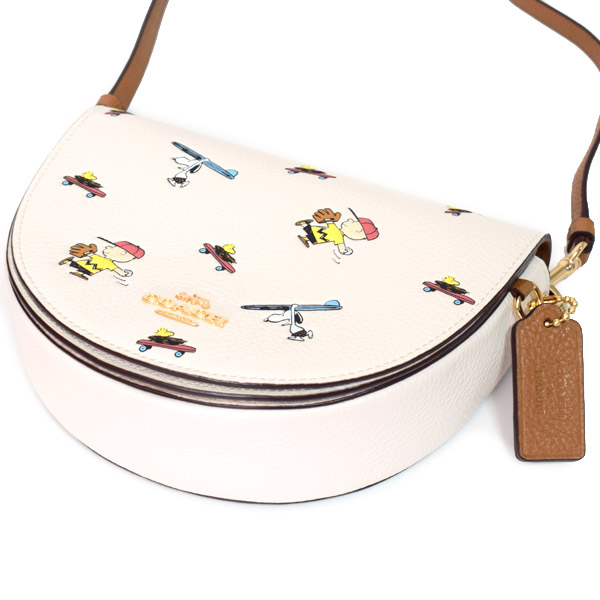 コーチとスヌーピーがコラボした超可愛い本革バッグを厳選入荷!三日月、またはハーフムーン、ドーム型ともとれる独特な形が特徴の希少モデル!馬車ロゴがワンポイントアクセントになったとっても上品でフォーマルなスタイルにも合わせやすいシンプルな日本未発売バッグです◎付属レザーストラップは取外し可能でシーンに応じて使い分けが可能なのも嬉しい*カジュアルやフェミニンにもコーディネートを楽しめます。ご自分へのご褒美や、大切な方、ピーナッツが大好きな方へのプレゼントにも是非!本日16時までの注文は即日出荷!もちろん全品送料無料!お客様の顔を思い浮かべ真心込めて梱包いたします!アメリカのCOACHファクトリーより入荷の新品本物の商品ですのでどうぞご安心してお買い求めくださいませ。