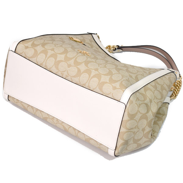 コーチの日本未発売ショルダーバッグ!シグネチャー柄にホワイトレザーがアクセントになった上品でシンプルな入手困難バッグです!内側は大きく3つに収納が分かれ、仕分けがしやすく使い易いデザインが大好評◎お仕事用にも、デイリー使いにもピッタリです*大切な方へのプレゼントにも喜ばれそう*大切な方へのギフトにも是非!本日16時までの注文は即日出荷!もちろん全品送料無料!お客様の顔を思い浮かべ真心込めて梱包いたします!アメリカのコーチファクトリーより入荷の新品本物の商品ですのでどうぞご安心してお買い求めくださいませ。