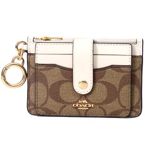 コチガルのホームカードケース【COACH】コーチ コーティングキャンバス スムースレザー シグネチャー キーリング付き アタッチメント カードケース コインケース カーキ×チャーク(日本未発売)