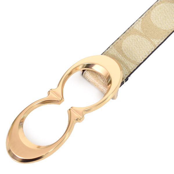 コチガルのホームベルト/帽子【COACH】コーチ コーティングキャンバス レザー シグネチャー バックル ベルト ライトカーキ×サドル S〔日本未発売〕