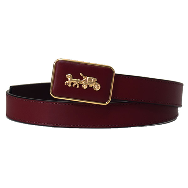 コチガルのホームベルト/帽子【COACH】コーチ レザー グレース プラーク バックル ベルト ワインオックスブラッド S〔日本未発売〕