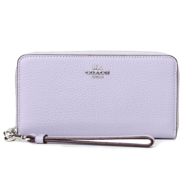 コチガルのホーム長財布【COACH】コーチ ぺブルレザー ロゴ リストレット ロング ジップ アラウンド 長財布 ミスト(日本未発売)