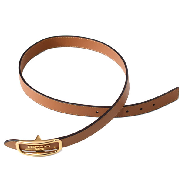 【COACH】コーチ カーフレザー モーガン レクタングル バックル ロゴ ベルト サドル S〔日本未発売〕[CE969]