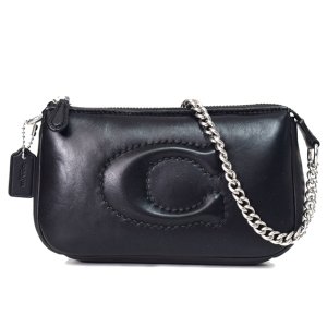 【COACH】コーチ レザー ロゴ ステッチ ノリータ 19 リストレット チェーン マルチ ポーチ ミニ ハンドバッグ ブラック〔日本未発売〕[CJ527]
