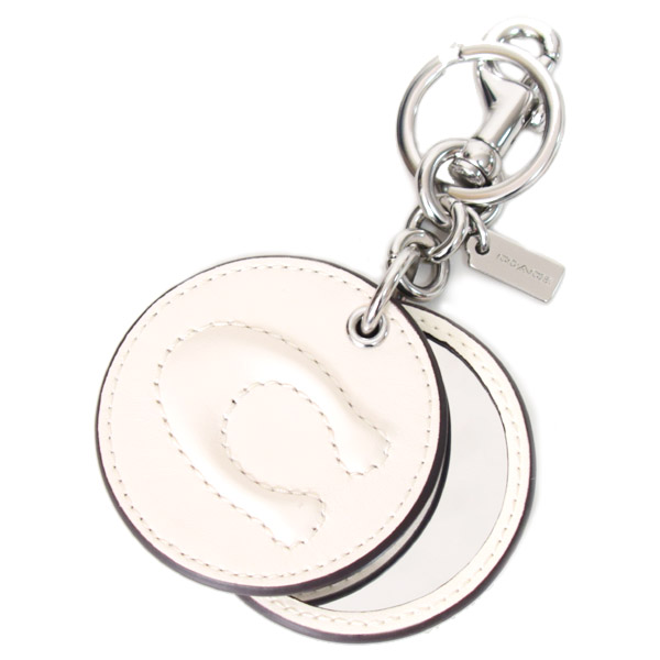 【COACH】コーチ スムースレザー C ロゴ ぷっくり ミラー 鏡 バッグチャーム キーリング キーホルダー チャーク(日本未発売)[CS060]