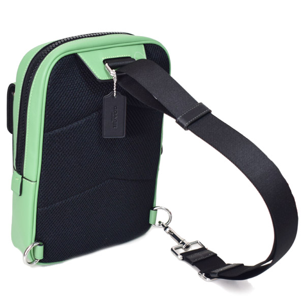 コーチから大人気メンズ斜めがけワンショルダーバッグの希少なグリーンカラーを本場アメリカで直入荷!とってもオシャレな落ち着いた色味が魅力たっぷり!お洒落メンズ必見です♪コーチのシグネチャー柄をベースに良質レザーを組み合わせたクールなデザインが魅力です!ブランドを象徴する良質PVCキャンバスとレザーで丁寧にシンプルにデザインされた高級感溢れる魅力たっぷりのボディバッグに仕上がっております!ショルダーは左右の位置が変えられるリバーシブルタイプなので使い勝手も抜群◎普段使いはもちろん、旅行のサブバッグとしてもマルチに使えるオススメバッグです♪ベーシックなデザインなので大切な方への贈り物としてもおすすめです*本日16時までの注文は即日出荷!もちろん全品送料無料!お客様の顔を思い浮かべ真心込めて梱包いたします!アメリカのCOACHファクトリーより入荷の新品本物の商品ですのでどうぞご安心してお買い求めくださいませ。