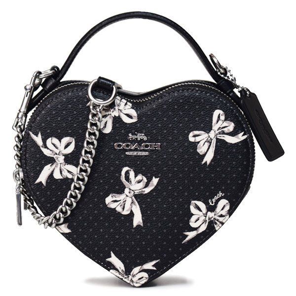 コチガルのホーム2WAYバッグ【COACH】コーチ バッグ チェーン ハート コーティングキャンバス レザー リボン ドット 水玉 ボウ プリント ダブルジップ クロスボディ 2way ハンドバッグ ショルダーバッグ ブラックマルチ(日本未発売)