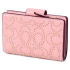 コーチの二つ折り財布よりスタッズが可愛い日本未発売モデルを本場アメリカで直入荷!コーチのシグネチャー柄をスタッズで表現された斬新かつ上品なデザインが魅力!落ち着いたピンクとスタッズのシルバーカラーの組み合わせがGOOD!コンパクトなサイズながら内側は収納スペースも多く、小銭入れ、札入れ、カード入れ、IDポケットなど機能性も充実しており使い勝手も抜群◎サブ用としてもGOOD♪小さいバッグ用に一つは持っておきたいですね!ベーシックなカラーなので、プレゼントにもオススメです*本日16時までの注文は即日出荷!もちろん全品送料無料!お客様の顔を思い浮かべ真心込めて梱包いたします!アメリカのコーチファクトリーより入荷の新品本物の商品ですのでどうぞご安心してお買い求めくださいませ。