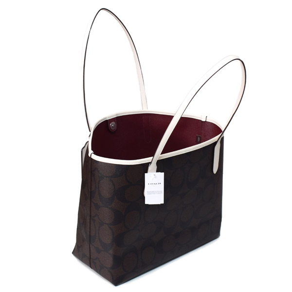 コチガルのホームトートバッグ【COACH】コーチ バッグ コーティングキャンバス レザー シグネチャー ロゴ シティ トートバッグ ウォルナット×チャーク〔日本未発売〕