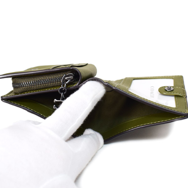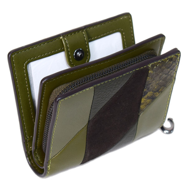 本場アメリカのコーチからとっても可愛い二つ折り財布を厳選入荷!パッチワークされたパイソンがアクセント!スエードや本革も随所にパッチワークされたクールな財布に仕上がっております!落ち着いたオリーブカラーのため幅広い年齢層の方におすすめ!コンパクトなサイズながら内側はカードポケットやマチの広い小銭入れ付きで使い勝手も抜群◎メインのお財布としてはもちろん、サブ用のお財布としても使えそう!プレゼントにも喜ばれそうなアイテムです♪本日16時までの注文は即日出荷!もちろん全品送料無料!お客様の顔を思い浮かべ真心込めて梱包いたします!アメリカのコーチファクトリーより入荷の新品本物の商品ですので、どうぞご安心してお買い求めくださいませ。