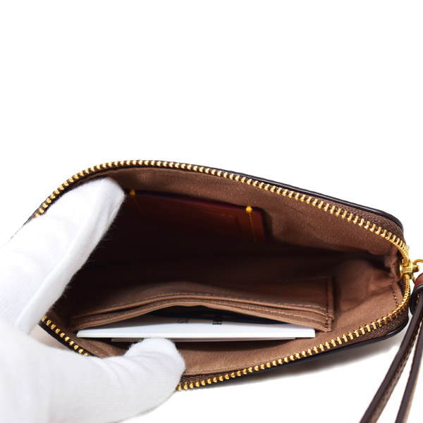 コーチとスヌーピーが夢のコラボ!希少なリストレット付きポーチを本場アメリカで直入荷!シグネチャー柄にスヌーピーが沢山描かれた超キュートな入手困難ポーチ!持っているだけで気分が上がりそう♪使い方は様々で、財布、小物、スマホ入れとしてもお使い頂けます◎スリムなデザインながら内側はカードポケット付きで使い勝手も抜群◎リストレット付きなのでちょっとしたお出かけにもクラッチバッグ感覚で便利です*ピーナッツが大好きな方へのプレゼントにピッタリのアイテム*本日16時までの注文は即日出荷!もちろん全品送料無料!お客様の顔を思い浮かべ真心込めて梱包いたします!アメリカのコーチファクトリーより入荷の新品本物の商品ですので、どうぞご安心してお買い求めくださいませ。※商品によって柄の位置に違いがございます。