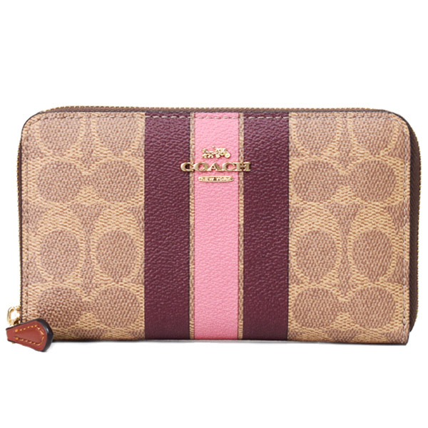 【COACH】コーチ 財布 コーティングキャンバス レザー シグネチャー バーシティ ストライプ ミディアム ジップ アラウンド ウォレット 財布 タンマルチ(日本未発売)[CBO79]