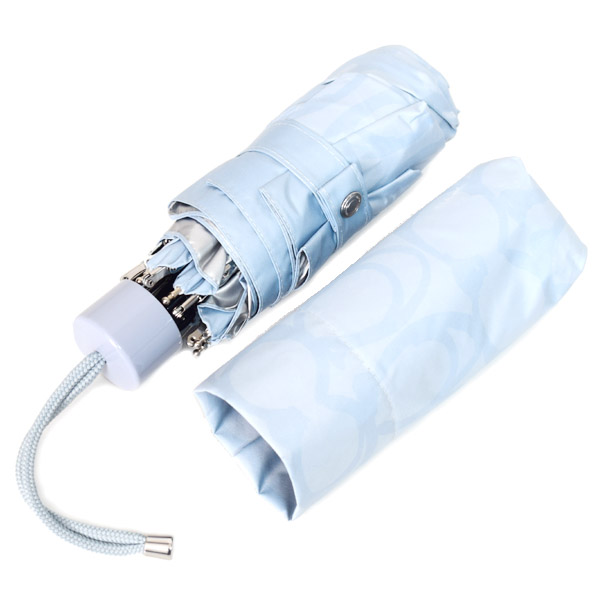 コーチの人気折りたたみ傘からアイスブルーカラー登場!本場アメリカで直入荷した日本未発売モデルです!UV99%カット機能が備わった高性能なので日傘としても使える晴雨兼用モデル!軽量でコンパクトなのでバッグにスッポリ収納可能!雨の日も晴れの日も外出するのが楽しくなること間違いなし!?日焼け止めクリームに加えこのUVカットの日傘で紫外線対策は万全!紫外線が気になる方へのプレゼントにも喜ばれること間違いなし!本日16時までの注文は即日出荷!もちろん全品送料無料!お客様の顔を思い浮かべ真心込めて梱包いたします!アメリカのコーチファクトリーより入荷の新品本物の商品ですのでどうぞご安心してお買い求めくださいませ。※メーカーの構造上、傘を開く際に奥まで強く押し込む必要がございます。