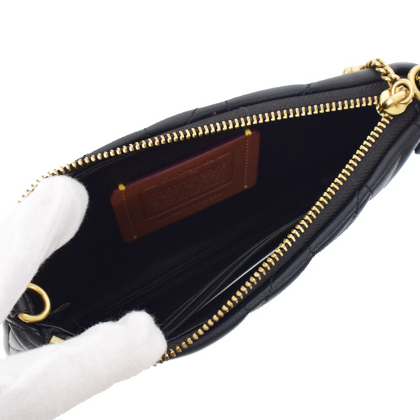 【COACH】コーチ バッグ キルティング レザー チェーン ピロー リストレット 3way クラッチ ポーチ ショルダー ハンドバッグ ブラック(日本未発売)[CW580]