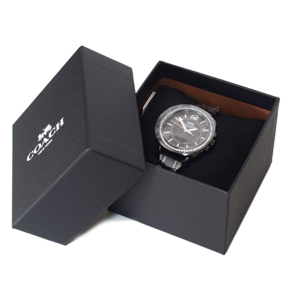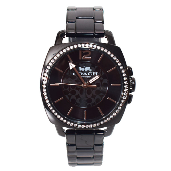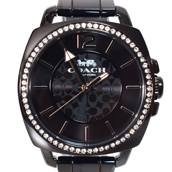 コーチのとても綺麗な腕時計♪ベゼルにラインストーンが埋め込まれたオシャレ際立つ日本未発売ウォッチ!四角と丸を融合させたケースがアクセント♪文字盤にはコーチのシグネチャーが描かれたキュートなデザインがGOOD♪一番人気のブラックカラーなのでギフトにも最適!飽きのこないシンプルな時計なので様々なコーデにも合わせやすそうですね!自分へのご褒美に如何ですか。嬉しいコーチ純正ボックス付きです♪本日16時までの注文は即日出荷!もちろん全品送料無料!お客様の顔を思い浮かべ真心込めて梱包いたします!アメリカのCOACHファクトリーより入荷の新品本物の商品ですのでどうぞご安心してお買い求めくださいませ。※新品のためガラスを含め随所に保護用フィルムが貼られている場合がございます。
