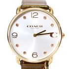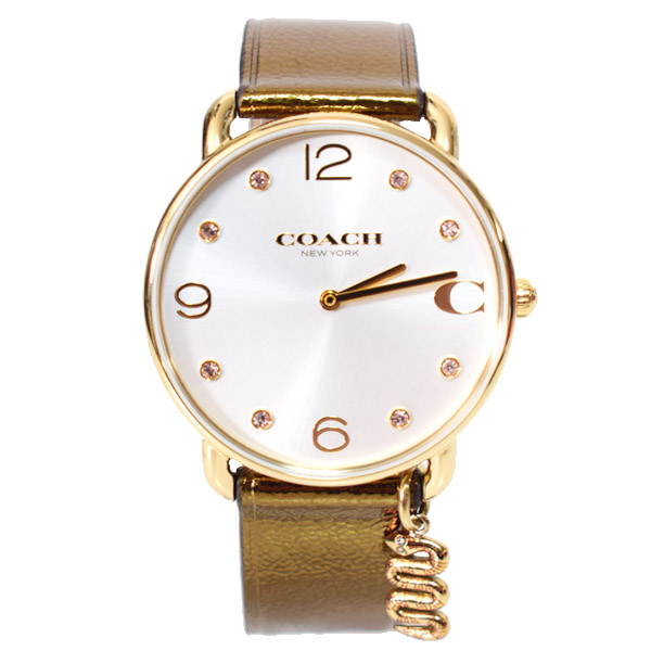 コーチの珍しい日本未発売ウォッチを本場アメリカで直入荷!コイル状の蛇チャームが超キュート♪3時の位置にコーチの「C」ロゴが配置されたさり気ないお洒落ポイントがGOOD♪世代問わず使えるシンプルなデザインが人気の腕時計♪ベルトはコーチらしい上質本革レザーでオンオフ問わずデイリーにお使いいただける大人可愛いデザインに仕上がっております*文字盤もシンプルでさり気ないコーチのロゴやストーンがポイント*コーチの時計はスイスの有名時計ブランドMOVADO社で製造されている為、性能、機能なども最高峰の高級時計です。この時計はコーチの専用ボックスが付属しております!プレゼントにもGOOD◎本日16時までの注文は即日出荷!もちろん全品送料無料!お客様の顔を思い浮かべ真心込めて梱包いたします!アメリカのコーチファクトリーより入荷の新品本物の商品ですのでどうぞご安心してお買い求めくださいませ。※新品のためガラスを含め随所に保護用フィルムが貼られている場合がございます。