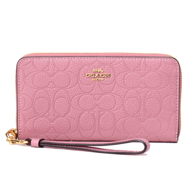 【COACH】コーチ 長財布 ぺブルレザー シグネチャー 型押し リストレット ロング ジップ アラウンド 長財布 ピオニー(日本未発売)[CCL35]