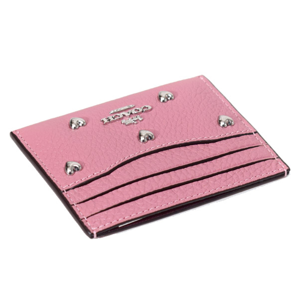 コチガルのホームカードケース【COACH】コーチ カードケース レザー スタッズ ハート リベット ロゴ スリム ID パスケース カードケース 定期入れ 名刺入れ ピオニー(日本未発売)