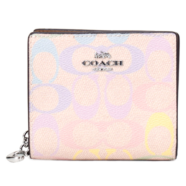 【COACH】コーチ 財布 コーティングキャンバス レザー シグネチャー レインボー ロゴ チャーム スナップ ウォレット 二つ折り 財布 サンドマルチ(日本未発売)[CDD11]