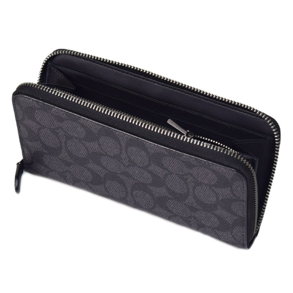 コチガルのホームメンズ財布【COACH】コーチ メンズ 長財布 コーティングキャンバス レザー シグネチャー アコーディオン ウォレット ジップ アラウンド 財布 チャコール×ブラック(日本未発売)