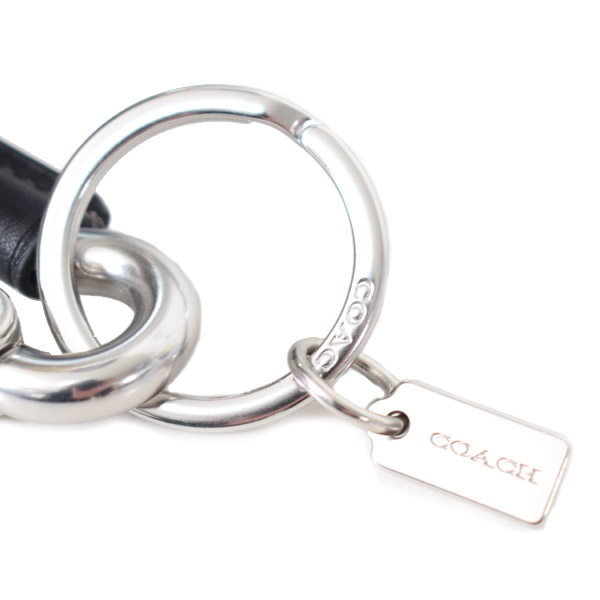 コチガルのホームキーホルダー【COACH】コーチ キーホルダー カラビナ メタル レザー ロゴ キーホルダー キーリング シルバー×ブラック(日本未発売)