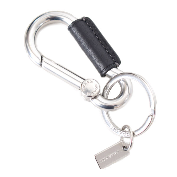 【COACH】コーチ キーホルダー カラビナ メタル レザー ロゴ キーホルダー キーリング シルバー×ブラック(日本未発売)[CCW07]