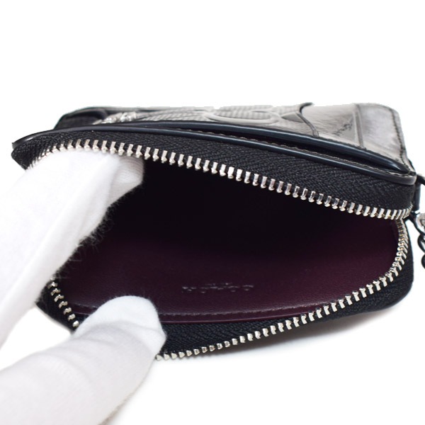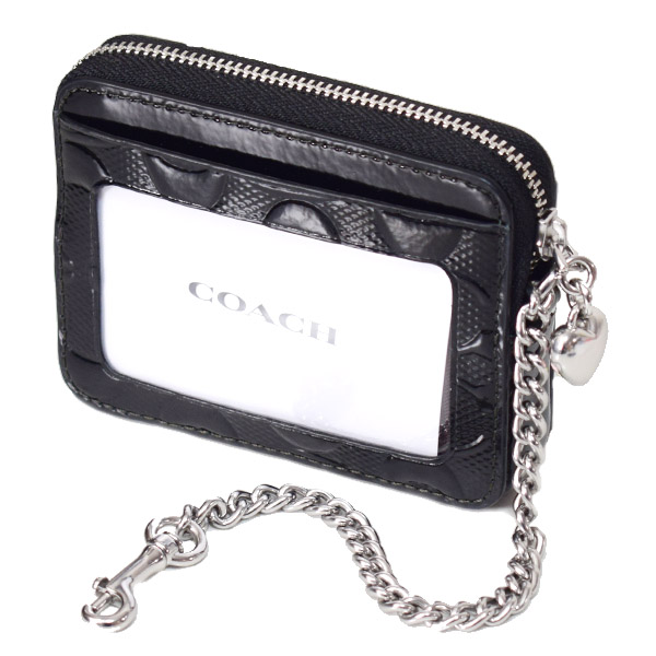 コーチの大人気チェーン付きカードケースからパテント素材の日本未発売モデルを本場アメリカで直入荷!光沢あるテカテカ素材に落ち着いたブラックカラーが超オシャレ!コインケース、又は名刺入れとしても使える多目的ポーチなので色々なシーンに大活躍!シルバーのチェーンも超可愛いですね♪ICカードにも対応したポケットにも入る丁度いいサイズ感もGOOD!通学通勤によく使うSUICAやICOCAなども入れられます♪使い方色々で便利な小物!プレゼントにもオススメ☆本日16時までの注文は即日出荷!もちろん全品送料無料!お客様の顔を思い浮かべ真心込めて梱包いたします!アメリカのコーチファクトリーより入荷の新品本物の商品ですのでどうぞご安心してお買い求めくださいませ。