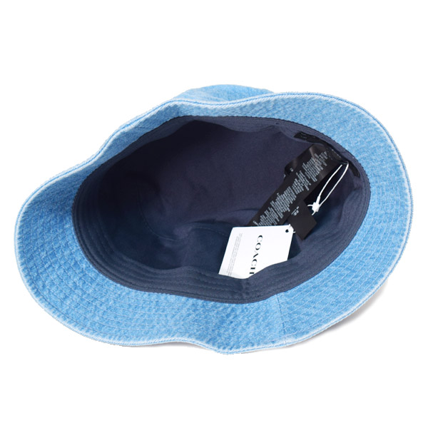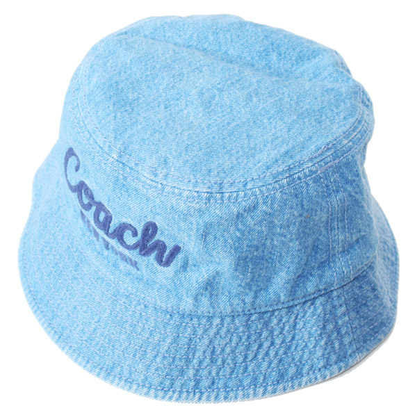 コチガルのホームベルト/帽子【COACH】コーチ バケハ 帽子 デニム コットン スクリプト エンブロイダード ロゴ バケットハット バケハ サファリハット インディゴ M/L〔日本未発売〕