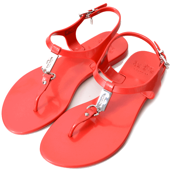 コーチの超レアで可愛いサンダルを入荷!キュートなスイカ色の日本未発売モデルです!履き心地の良い特殊ラバー素材で足にも優しいサンダルに仕上がっております!シルバーの金具が随所に使われ、フロントのロゴプレートがアクセントになったコーチの拘り詰まったサンダルです♪純正BOX付きでプレゼントにも最適です♪アメリカのCOACHファクトリーより入荷の新品本物の商品ですのでどうぞご安心してお買い求めくださいませ。