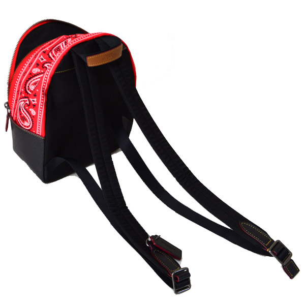 【COACH】コーチ ディズニー ミッキー コラボ ナイロン レザー バンダナ柄 ミニリュックサック バックパック ブライトレッド×ブラック〔日本未発売〕[59831]