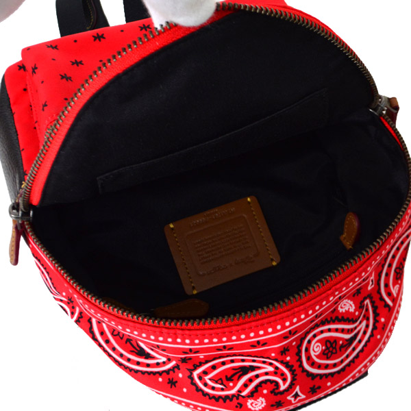 コチガルのホームバックパック【COACH】コーチ ディズニー ミッキー コラボ ナイロン レザー バンダナ柄 ミニリュックサック バックパック ブライトレッド×ブラック〔日本未発売〕
