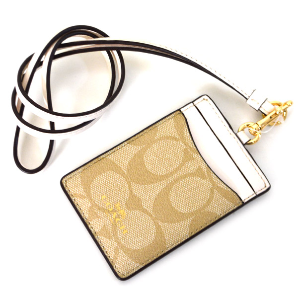 コチガルのホームカードケース【COACH】コーチ シグネチャー ラグジュアリー ID ランヤード 首かけ カードケース ライトカーキ×チャーク(日本未発売)