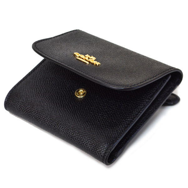 コーチからコンパクトで超可愛いスモール三つ折り財布が登場!本場アメリカで買い付けた日本未発売モデル!シンプルなブラックで大人の女性にピッタリのモノトーンが上品ですね♪三つ折りでコンパクトながら充実したポケットで収納力も抜群!サブ財布としても大活躍間違いなし!バッグの中でも幅を取らず、持ち運びも便利なのでちょっとしたお出かけにも最適!ご自分用にはもちろん、大切な方へのギフトにもぴったりのアイテムです*アメリカのコーチファクトリーより入荷の新品本物の商品ですので、どうぞご安心してお買い求めくださいませ。