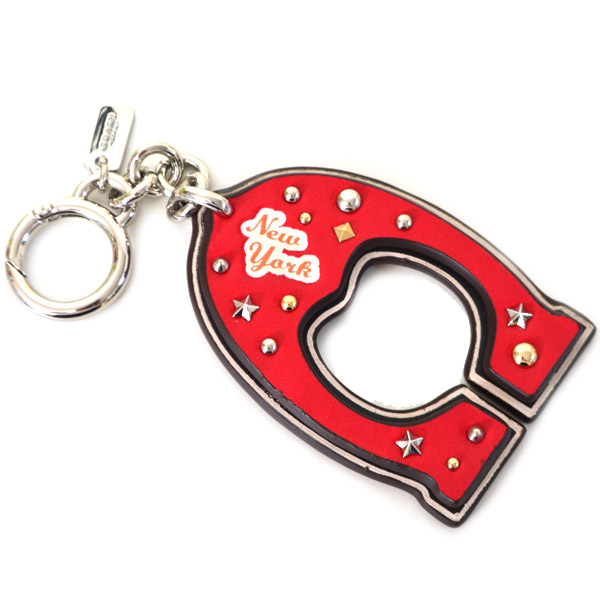 コチガルのホームキーホルダー【COACH】コーチ レザー ロゴ スタッズ ニューヨーク キーリング キーホルダー レッドマルチ(日本未発売)