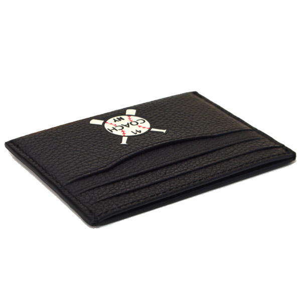 コチガルのホームカードケース【COACH】コーチ ベースボールバッチ レザー スリム カードケース 定期入れ 名刺入れ ブラック(日本未発売)